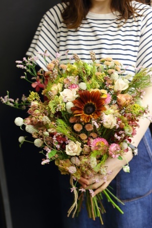 単発プリザーブドレッスンは、ご両親へのギフトの花や、ブーケを手作りできる一日教室です。