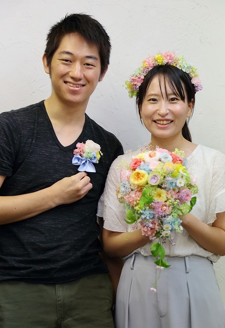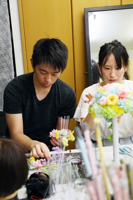 そして花婿様が髪飾りをハンドメイドですよ。