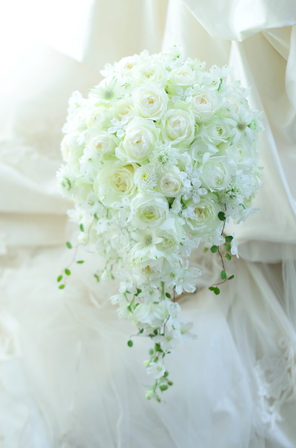 本日、ホテル椿山荘東京様へのセミキャスケードブーケ。