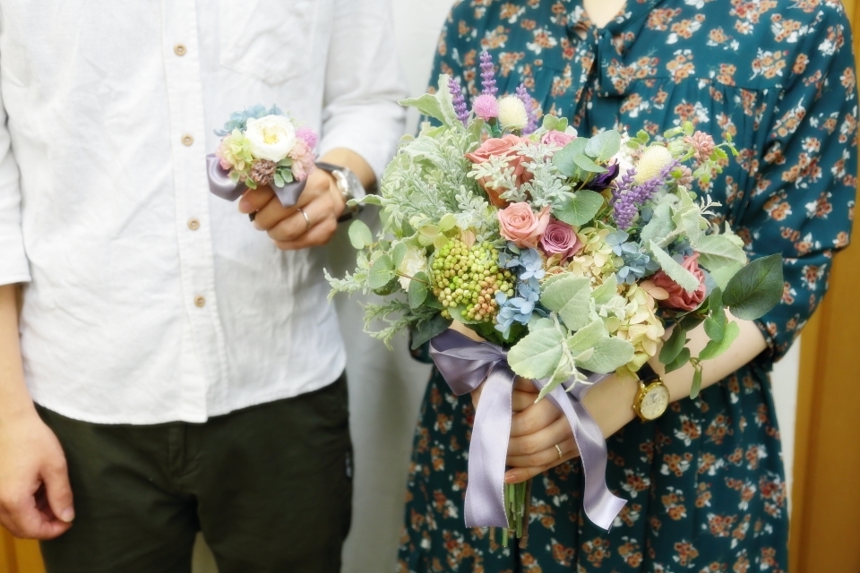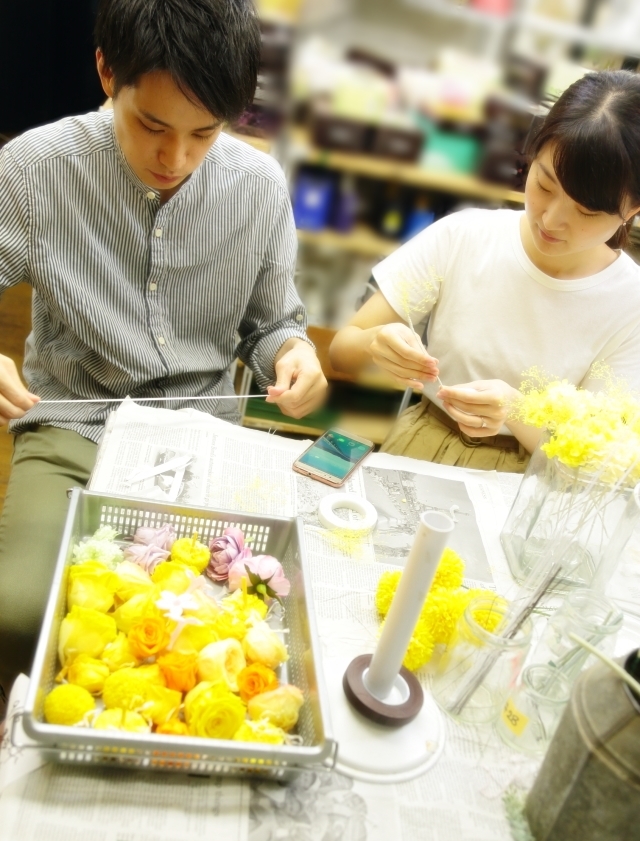 単発プリザーブドレッスンは、ご両親へのギフトの花や、ブーケを手作りできる一日教室です。