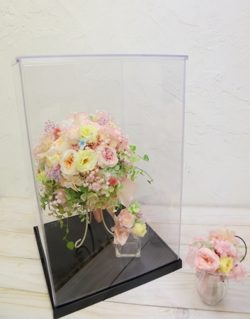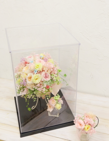 プリザーブドブーケを保存ケースにいれるべく、
