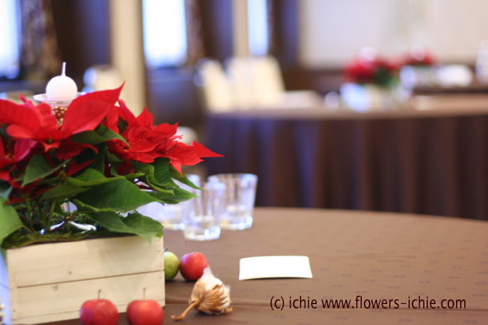 クリスマスにちなんで会場装花はポインセチアの鉢でやりたいということ、