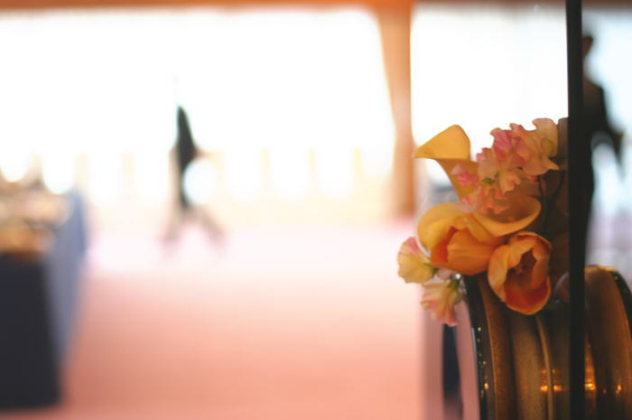メインテーブルのお花は前から見たときの