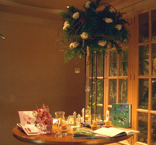 クリスマスも近い時期、白バラのツリーを仕立てたのでした。