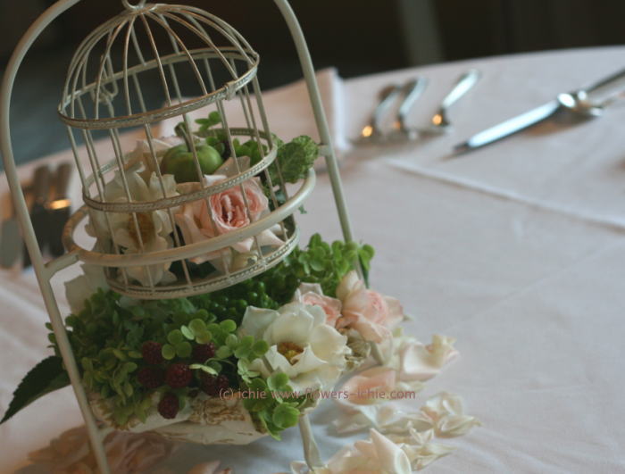 上の鳥かごをそれごとひとつ、それぞれお持帰りできるようにしています。