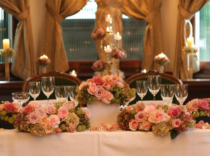 メインテーブルの装花をみて、「自分の時もこういうお花でやりたかった、