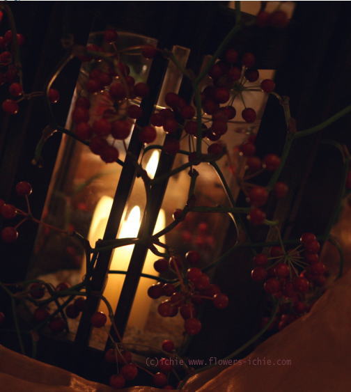 クリスマスをモチーフに実ものをたくさん使っています。