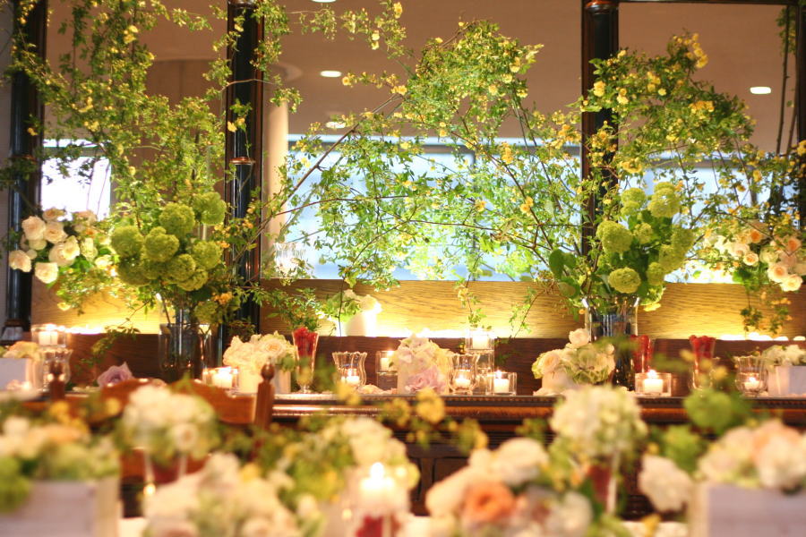 初台、新国立劇場にあるレストランマエストロ様の装花。