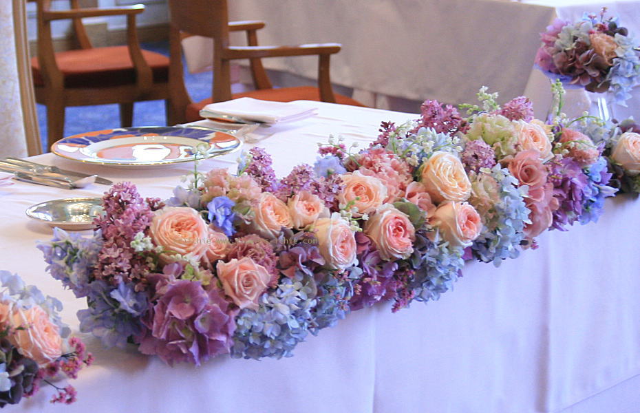 ライラックとスズランとアジサイ、5月の装花です。