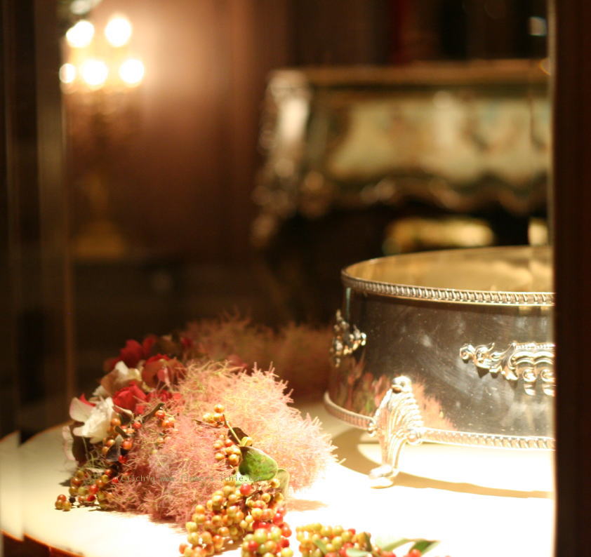 ガラスの金に光が反射するようにしています。