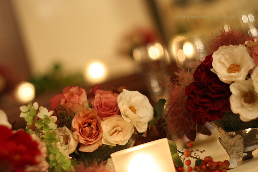 メインテーブル装花のアップです。