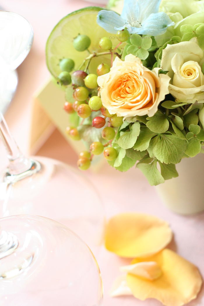 フルーツのマスカットとライムをいれて。
