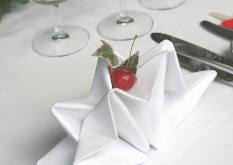 ナフキンフラワーとして置いた、りんごとアイビー。
