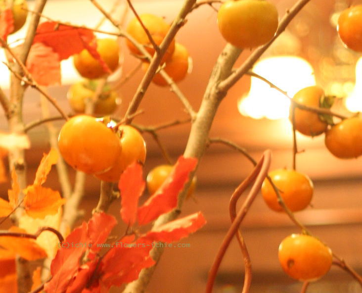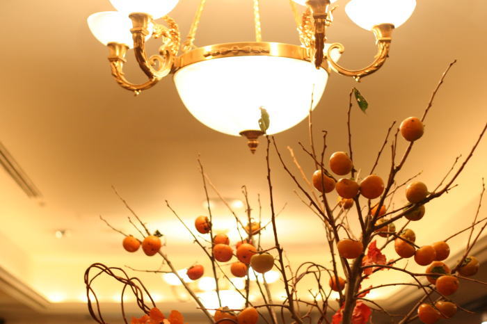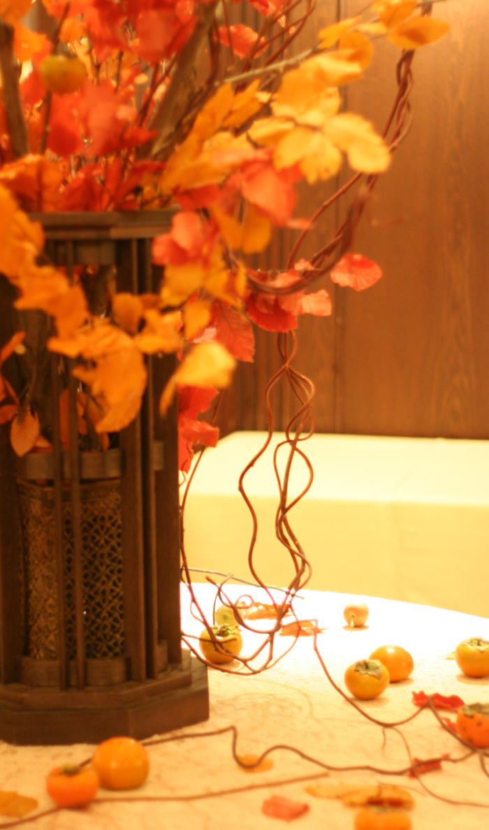 中央にある大きなテーブルにあしらった、柿の枝です。