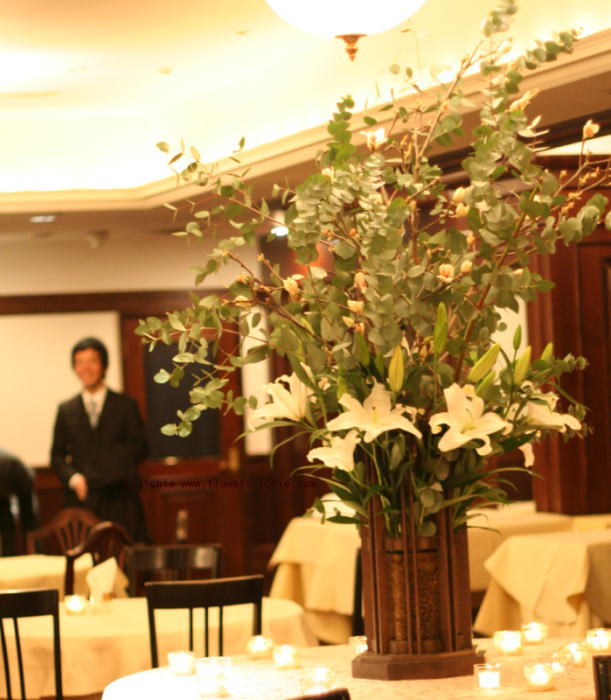 ユーカリとハクレン、新婦様の大好きなユリを入れて。