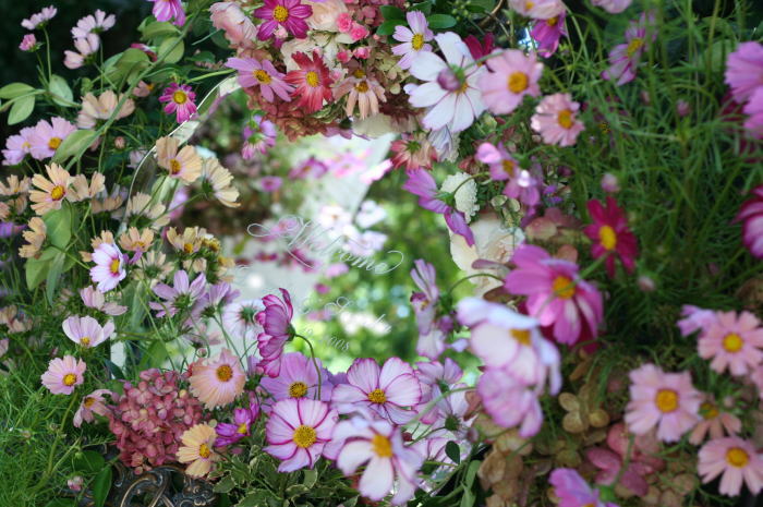 ウエルカムボードは鏡の仕立てだったので、のぞきこめばまた別のコスモスがそこに映し出されるように。