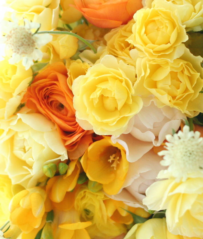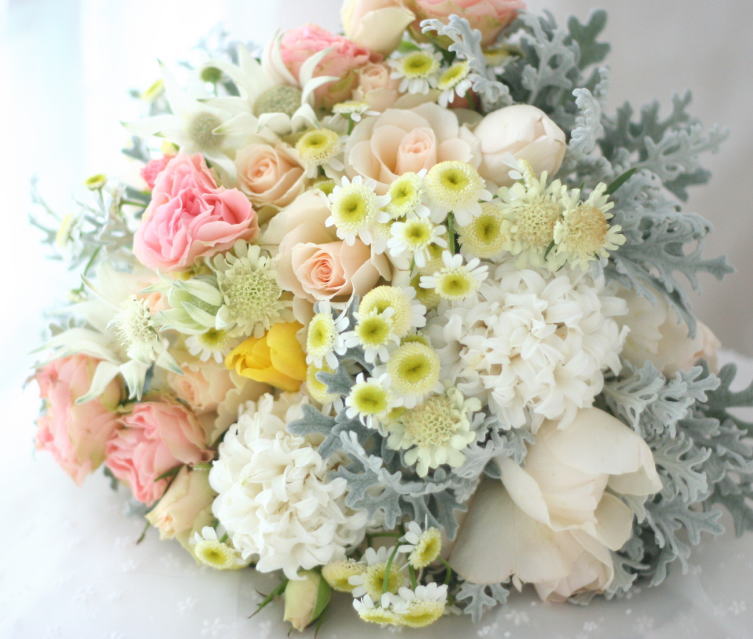 白く小さな花はマトリカリアの「天使の卵」という品種。