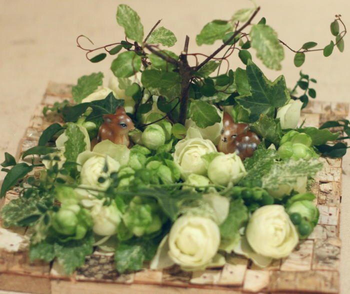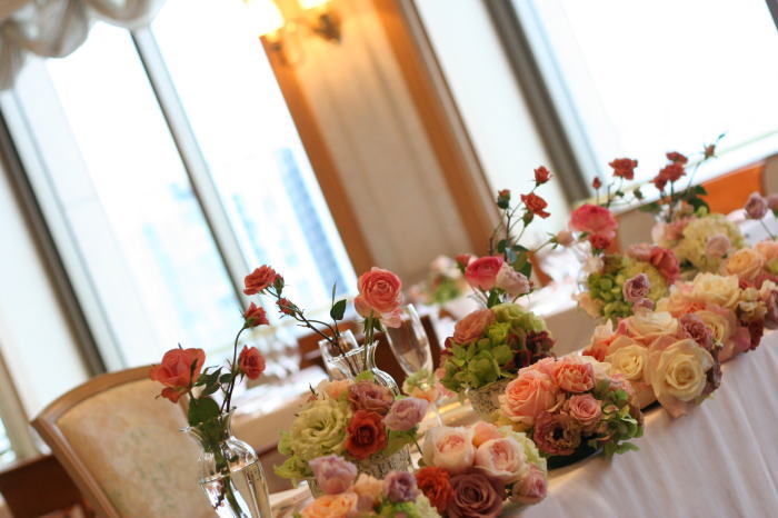 メインテーブルにひらりとちょこっと伸ばしたバラは