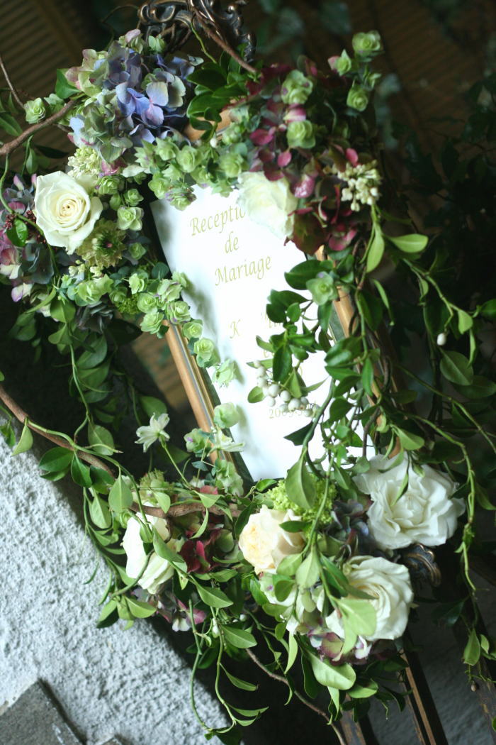 ウエルカムボードを立てるイーゼルに巻きつけたのは