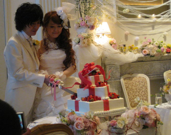 ナイフについているリボンは新婦様のお手製。