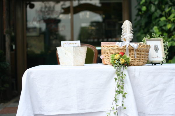 時間におわれてこの2枚しか撮れませんでしたが受付の装花。ワンポイントあるだけで結婚式らしくなる・・・と思います。