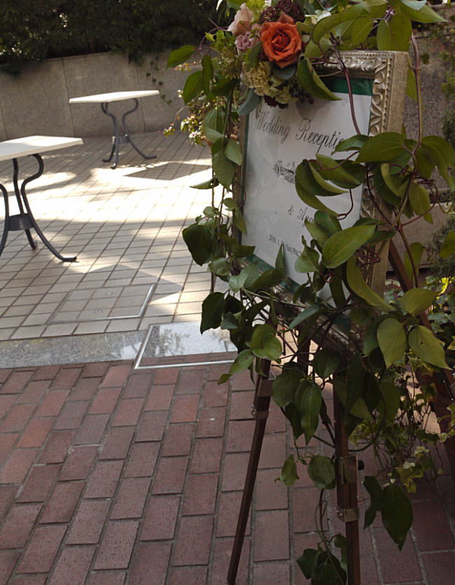 つたをからませたウエルカムボード。