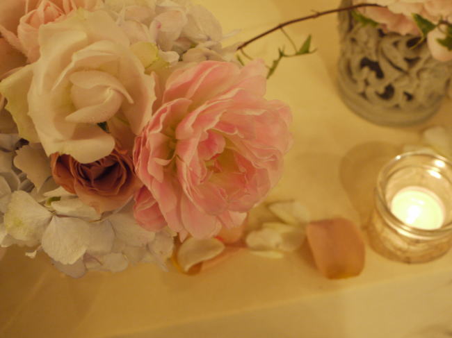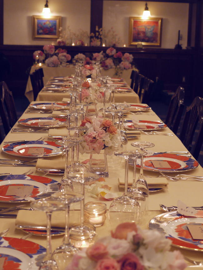 ご両親への贈呈用のアレンジを作られた新郎様。