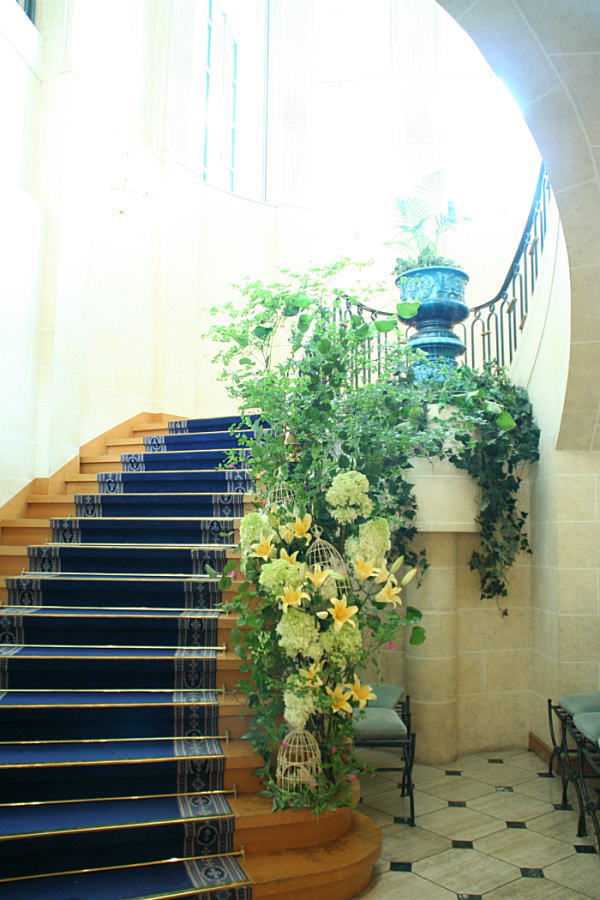 立派な木々と黄色い百合、そして可愛らしい鳥かご・・・。
