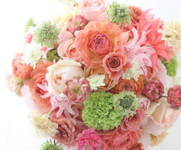 神前式でのピンクの色打ち掛けにあわせて作った花の髪飾りはとても似合っていたと喜んでくださいました。