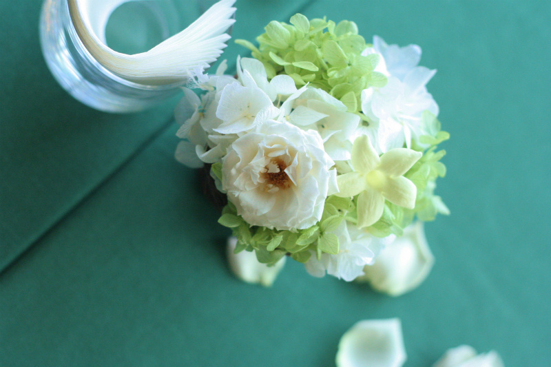 というお二人のご意向で、ここはプリザーブドフラワーで。
