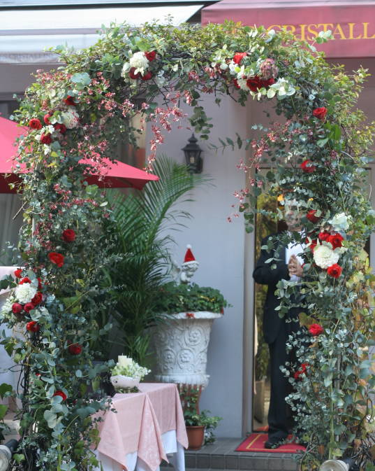 入り口のアーチに元から張り巡らされていたアイビーの葉は