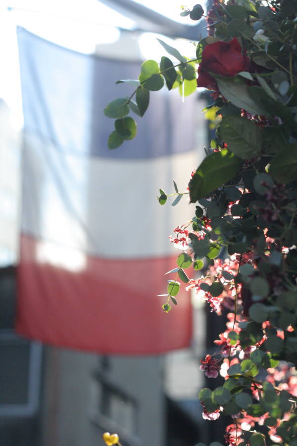 使い込まれた三色旗が、良く晴れた秋の空に映えるなあと思いながら