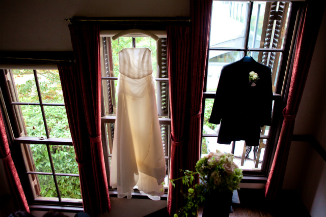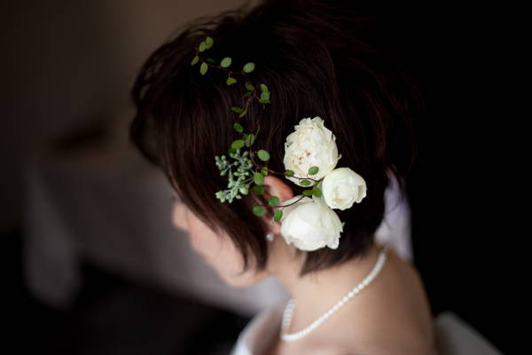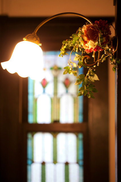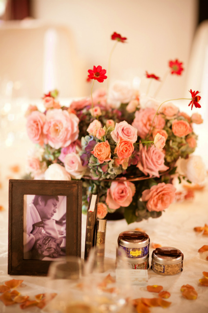 横浜の山手西洋館、秋の会場装花とブーケのお写真。