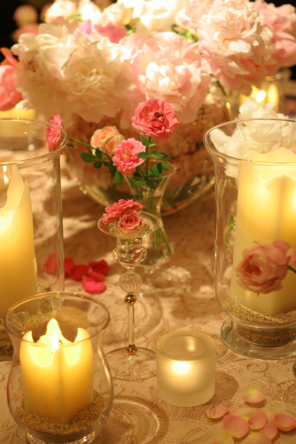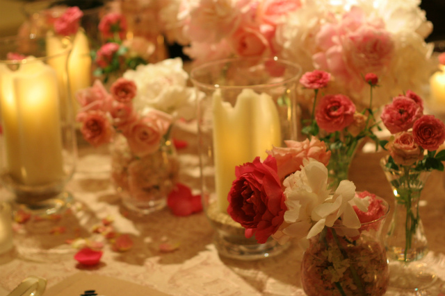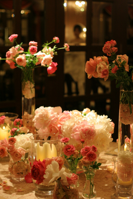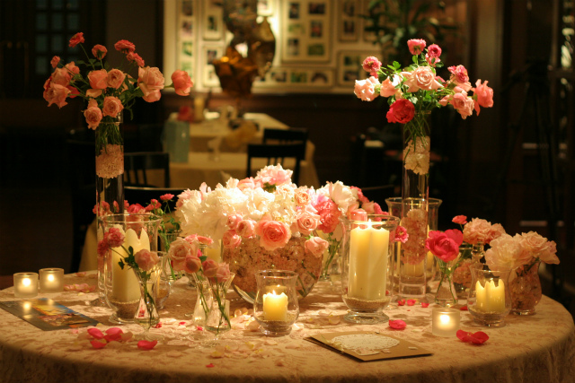 メモリアルテーブルと呼ばれる花をたくさん飾った