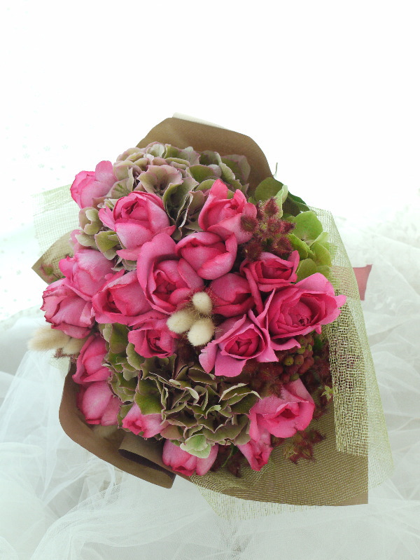 香り高いイブピアッチェというバラをたくさん使って作りました。