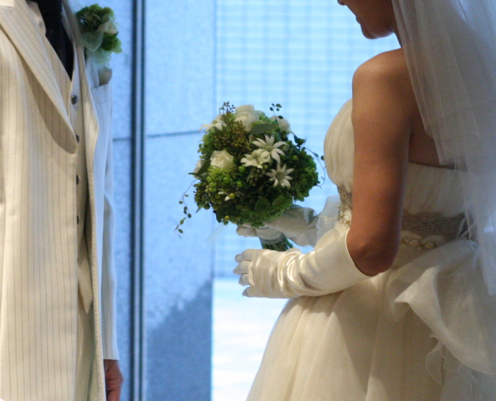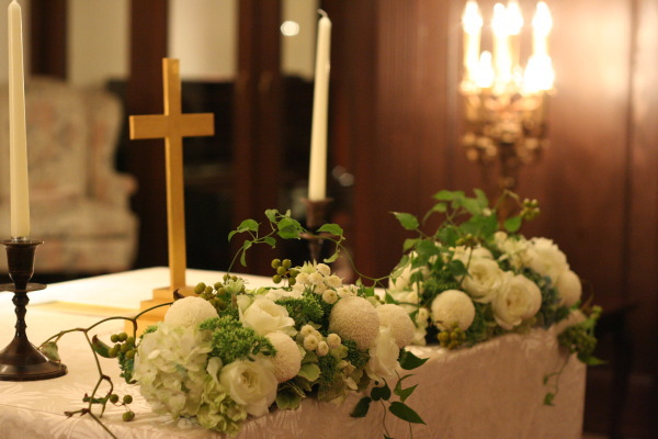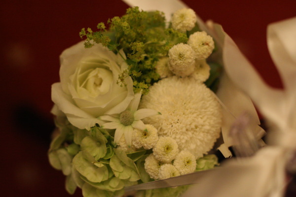 挙式の会場の花は、新婦様の好きなピンポンマムをいれています。