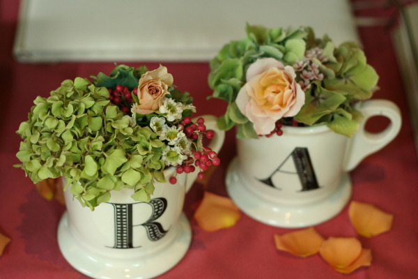 お二人のイニシャル入りのマグカップに) とか