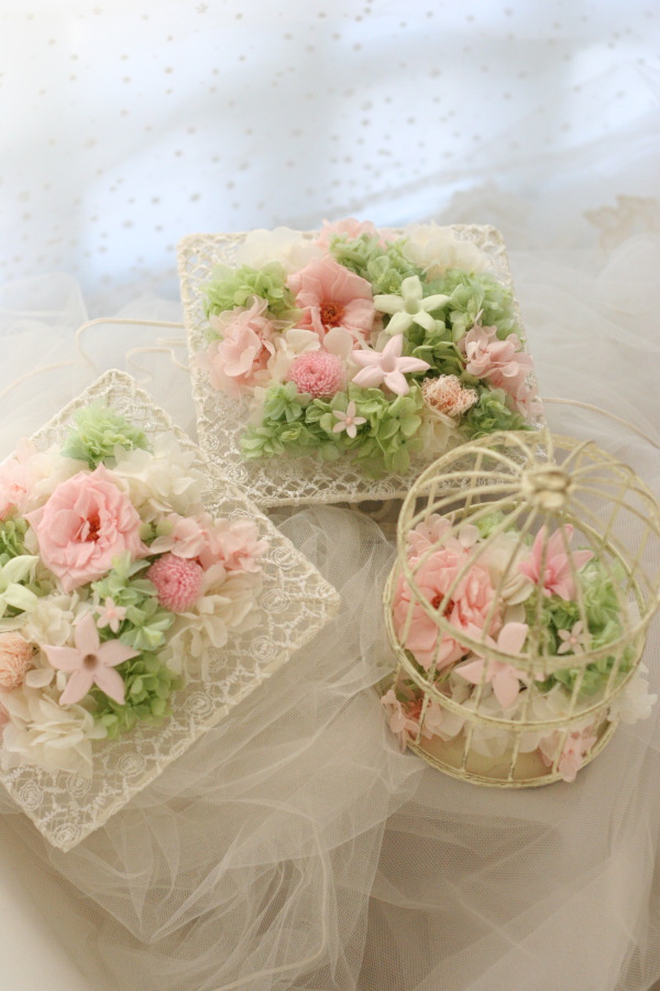 リングを置く場所もワイルドフラワー(オセアニア系の花)を使ってみたりしています。