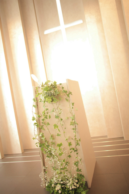 白いお花が‘たちのぼる‘ような祭壇は私たちのお気に入りです。