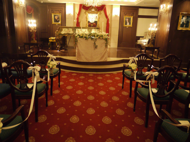チャペルの装花は、ブーケとお揃いで。
