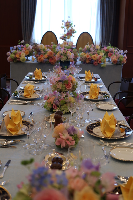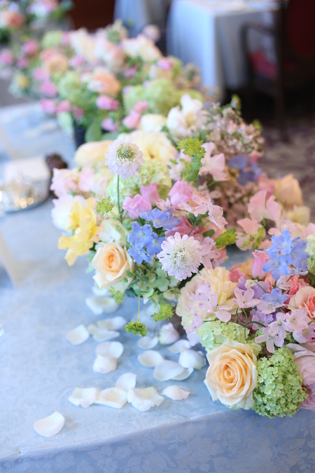 ゲストテーブル装花のあいまあいまに