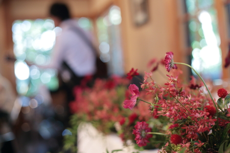 リハーサルするすぐ横で、装花の最後の仕上げをします。