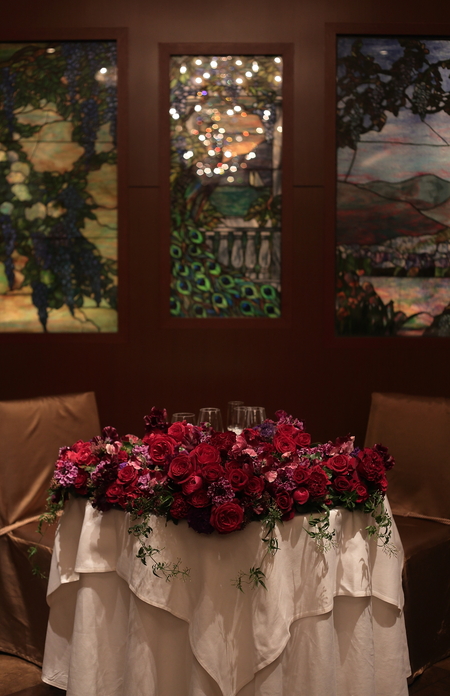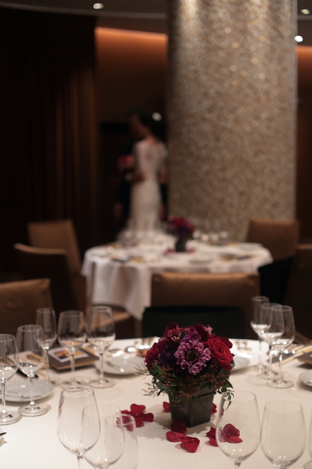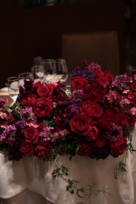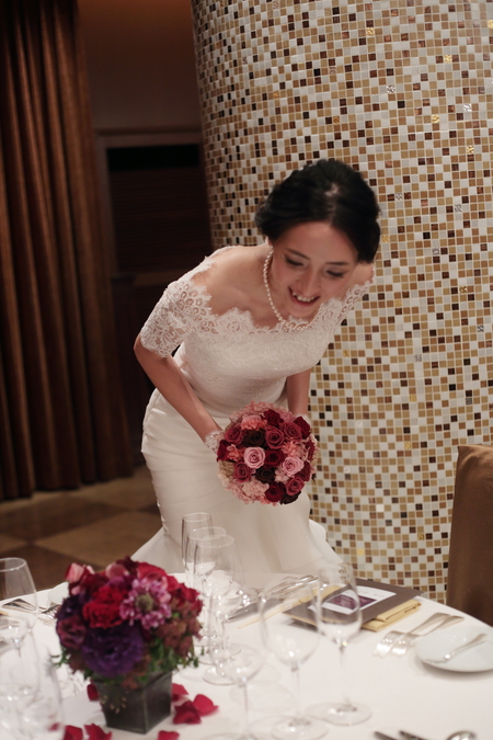 ゲストテーブルの花を見て、わあと顔を寄せてくださった瞬間。