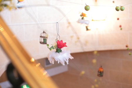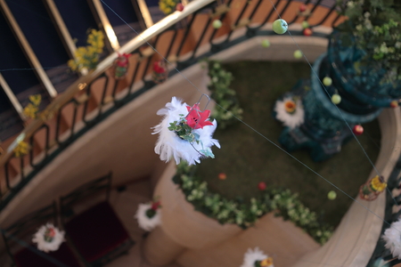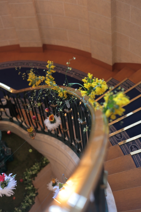らせん階段の中空に浮かぶチューリップ、