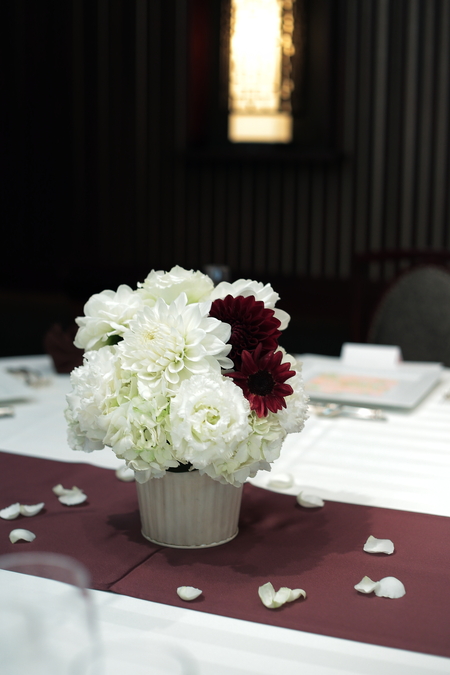 白にボルドーを挿し色に。