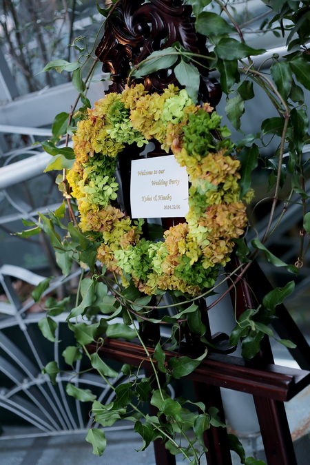 アジサイだけで作ったウエルカムリースは