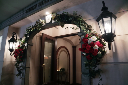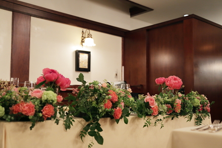 花嫁様のドレスにあわせて発色のよい赤のバラです。
