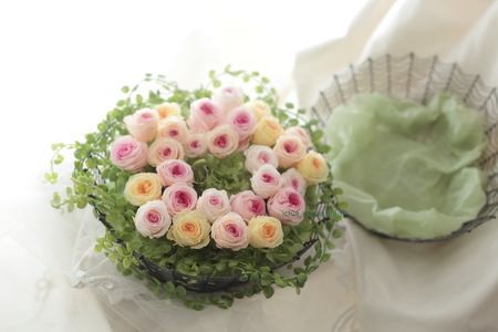ゲストの皆様に、小さなプリザーブドのバラを一輪ずつ、