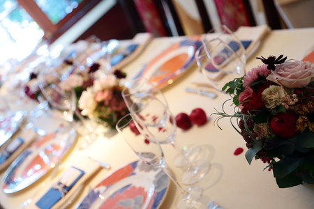 シェ松尾松濤レストラン様への冬の卓上装花、