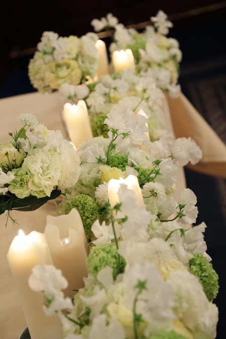 メインテーブルには、キャンドルをともして。